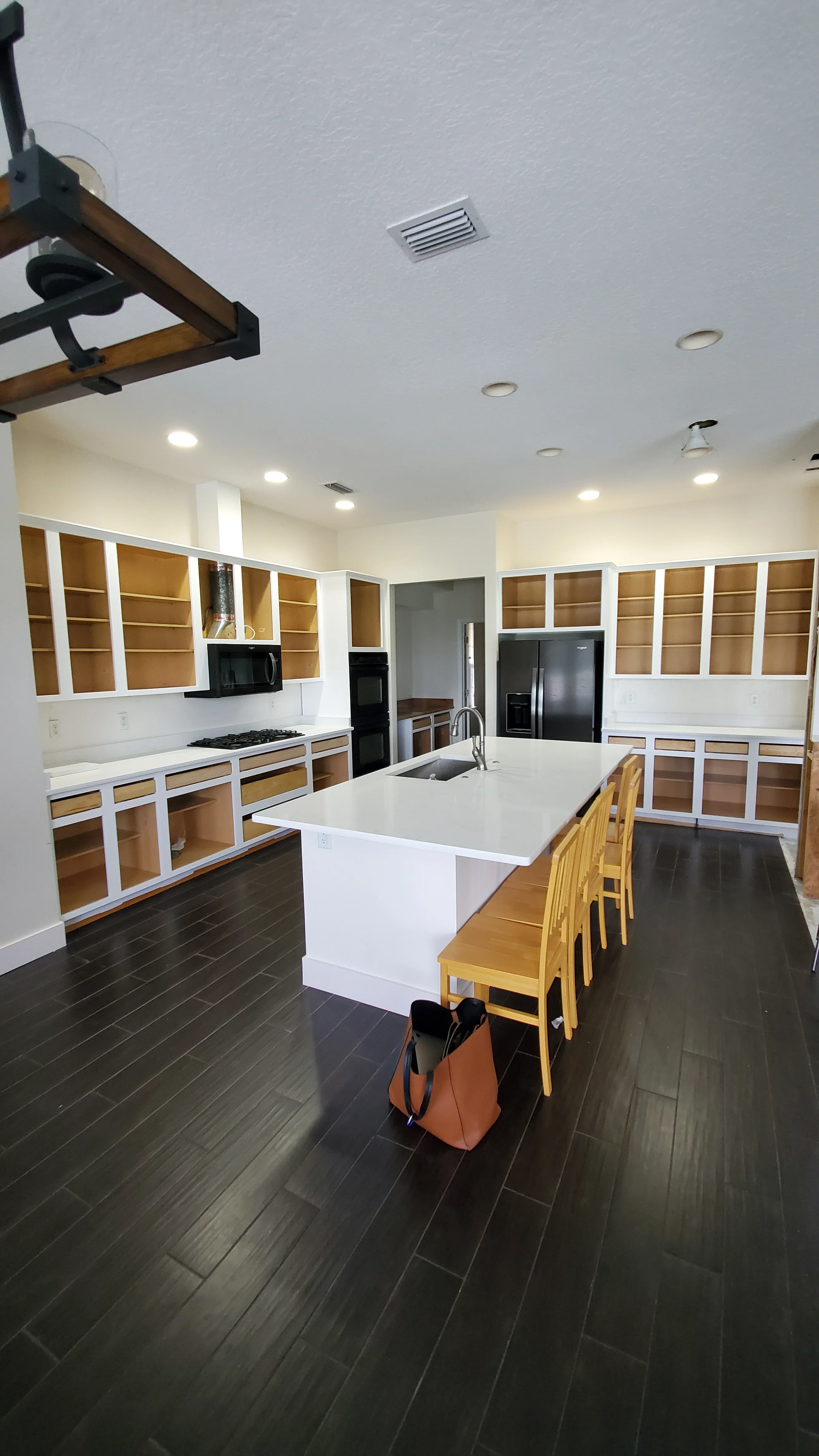 As part of our process, we request that clients empty their cabinets. Why? Because this provides us with the necessary space to use our professional sanding machines, ensuring the removal of all old material. By doing this, we enhance the adhesion of the new products, resulting in a superior finish that can last for years.